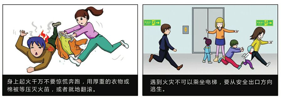 穿過著火區(qū)域時,萬一衣服著火,可就地打滾壓滅火苗,不宜帶火奔跑,以免加快空氣的相對流動,從而增大衣物燃燒的火勢。如果著火點位于自己所處位置的上層,此時應向樓下逃去,直至到達安全地點;如果著火點位于自己所處位置的下層,且火和煙霧已封鎖向下逃生的通道,應盡快往樓上逃生,樓頂平臺是一個比較安全的場所;發(fā)現(xiàn)自己被火、煙追趕且又封鎖了向上的道路時,此時應果斷地選擇橫向逃生路線,從另一層樓的走廊通道逃生,或退守到該層有利于逃避的房間內,尋求其他的自救逃生方法。