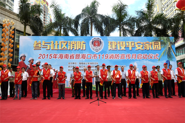 11日上午9時30分,??谑芯┤A城社區(qū)熱鬧非凡,人潮涌動。以“參與社區(qū)消防,建設平安家園”為宣傳主題的2015年海南省暨海口市119消防宣傳月活動啟動儀式在這里隆重舉行。省消防安全委員會副主任、省公安廳李洪副廳長出席儀式并致辭。省委宣傳部、省政府辦公廳、省教育廳、民政廳、文體廳、共青團海南省委等有關部門領導及總隊林鐵剛總隊長、伍林總工程師、張剛部長,??谑姓?、市公安局、龍華區(qū)政府、市消防支隊等有關負責人和近千名各界群眾參加了啟動儀式。