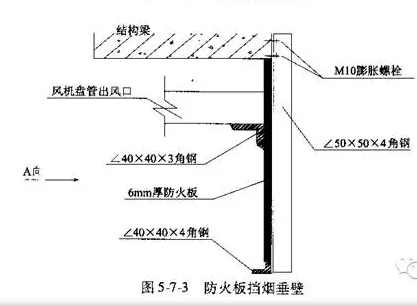 防火布所在位置的上端角鋼用膨脹螺栓直接固定在建筑頂部,下端角鋼用膨脹落山固定在兩端的墻或立柱上。上下端角鋼之間用角鋼分為若干檔,每檔間距依實際空間及廠家產(chǎn)品而定。如沒有規(guī)定,按圖紙要求定位900mm,分檔的豎向角鋼與上下端角鋼焊接。