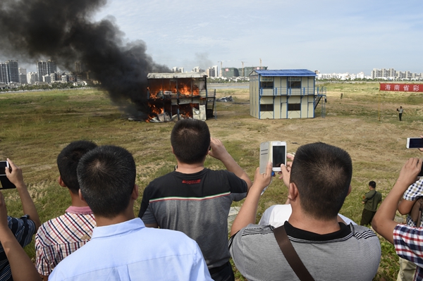 9月28日上午,省消防總隊和省住建廳在??诼?lián)合組織召開彩鋼板建筑專項整治現(xiàn)場會。來自省消防總隊、省住建廳、各市縣等相關(guān)部門負(fù)責(zé)人共近300人參加了此次試驗現(xiàn)場會。
