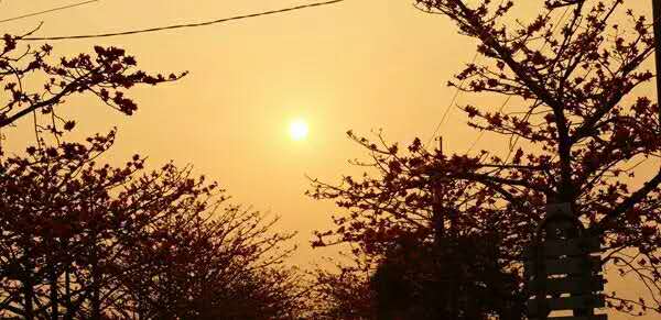夕陽(yáng)染紅木棉,